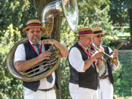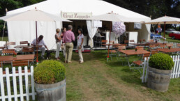 Eine lange Kaffee-Tafel unter den Bäumen wird aufgebaut – das Zelt „Graf Zeppelin“ lädt wieder ein zu eine stimmigen Zeitreise. Stilvolles Catering und Verpflegung gibt es hier und viel Dekoration und Zeitgeist, der das Picknick-Areal immer wieder noch bunter und vielfältiger erscheinen lässt.