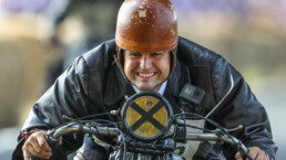 Im Fahrerlager stehen die Helden auf zwei und drei Rädern – Solomaschinen, Beiwagengespanne und Threewheeler – stilecht aufgereiht und geben mit Getöse die täglich erste Runde auf dem Rundkurs vor. Große Namen, die wir auch noch heute kennen, wie zum Beispiel Harley-Davidson oder Moto Guzzi, können da gefunden werden, aber eben auch die Verflossenen der Motorradgeschichte.