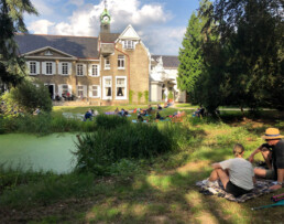 An einem kleinen See und einem Flußlauf stehen die Land-Rover beim Treffen.. verschlungene Wege führen über das Gelände, laden zum Flanieren ein… und und und… Es gibt viel zu entdecken im weitläufigen Gelände, im Park, und rund um das Gebäude-Ensemble mit mächtigem dreiflügeligem Innen-Hof, der nahezu 50 x 50 m misst.