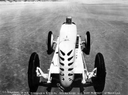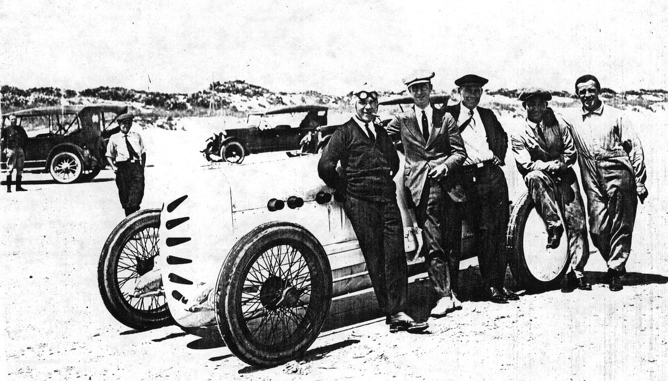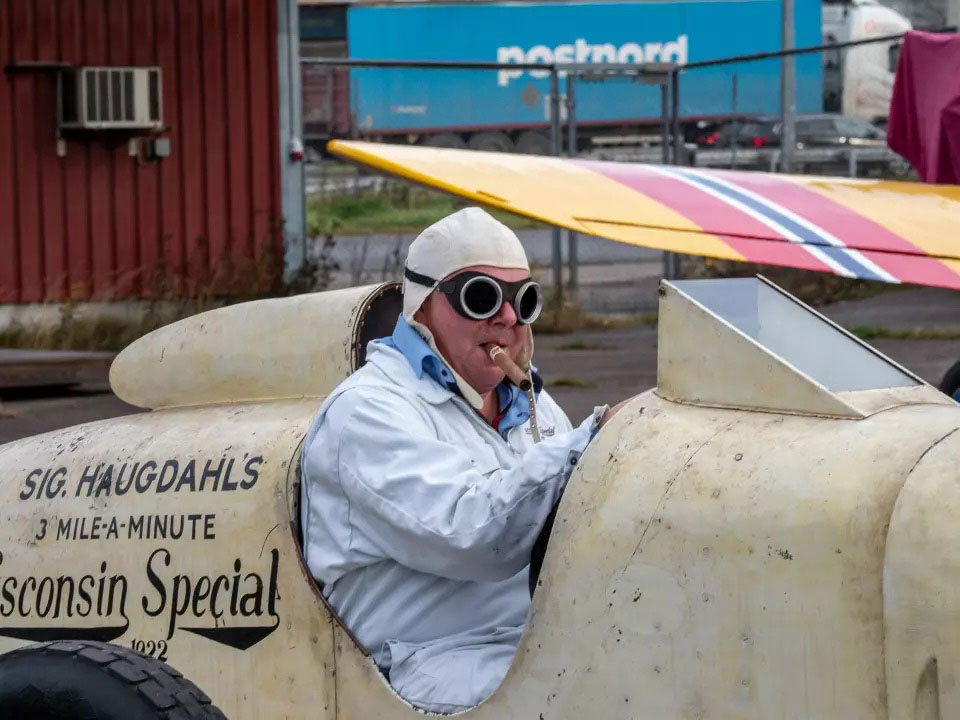 Sig Haugdahl – ein großartiger Pionier seiner Zeit und mehrfacher Weltrekordhalter mit Hochgeschwindigkeitswagen und Motorrädern – stellte 1922 den legendären „3 Miles a Minute“-Rekord mit dem mächtigen Wisconsin Special auf dem flachen Strand von Daytona Beach auf.
